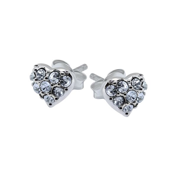 עגילים צמודים -מכסף עיטור לב וקריסטלים לבנים