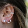 עגילים צמודים מכסף – עיגול וקריסטלים לבנים