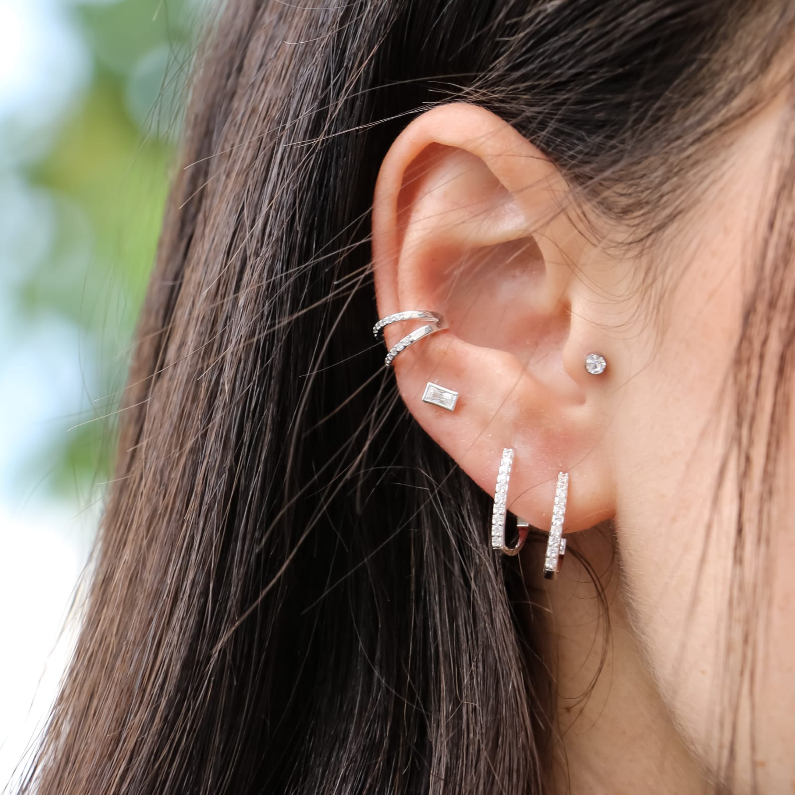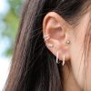 עגילים צמודים מכסף פס של קריסטלים לבנים משובצים