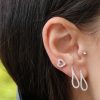 עגילים צמודים מכסף טיפה של קריסטלים לבנים משובצים