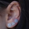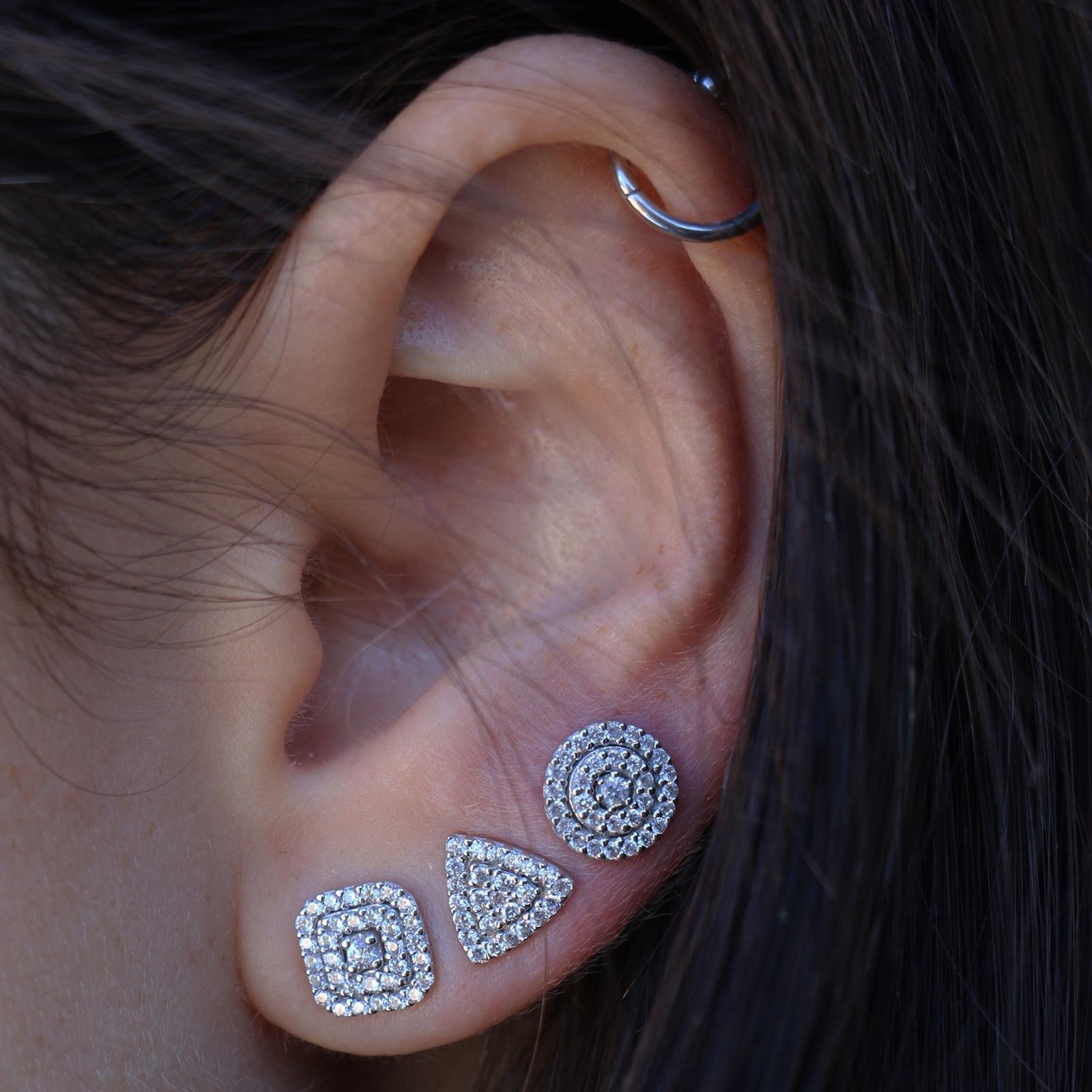 עגילים צמודים מכסף וציפוי רודיום משולשי קריסטלים לבנים
