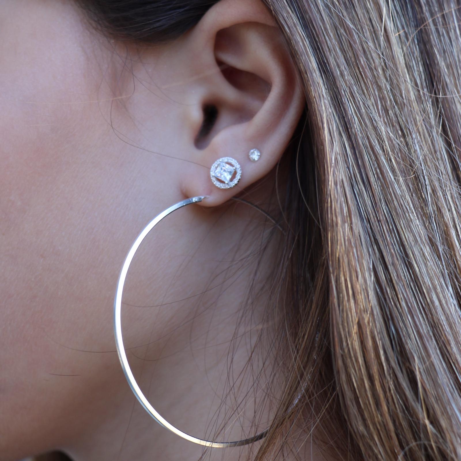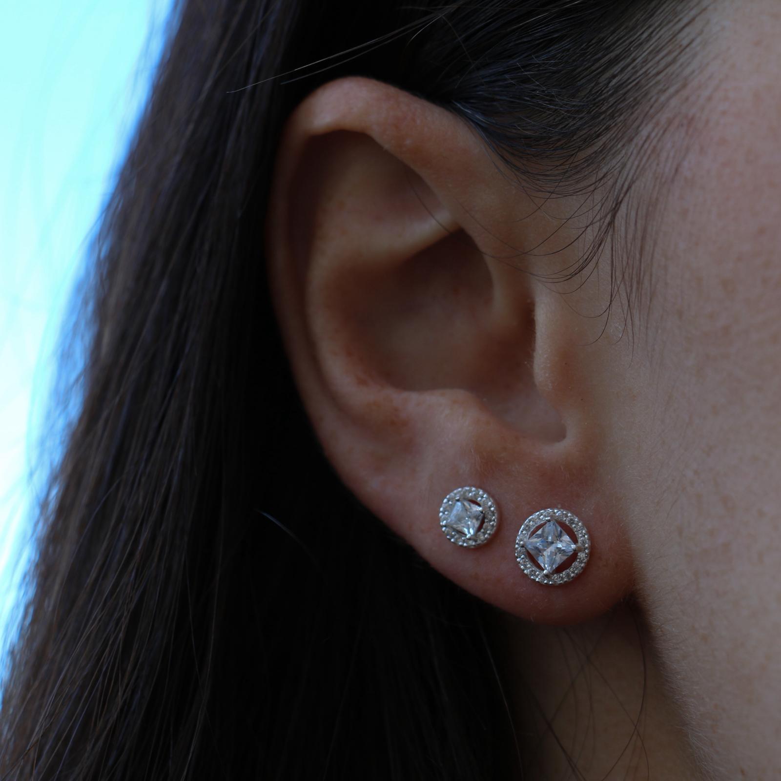 עגילים צמודים מכסף – זירקוניה ריבוע לבן וקריסטלים