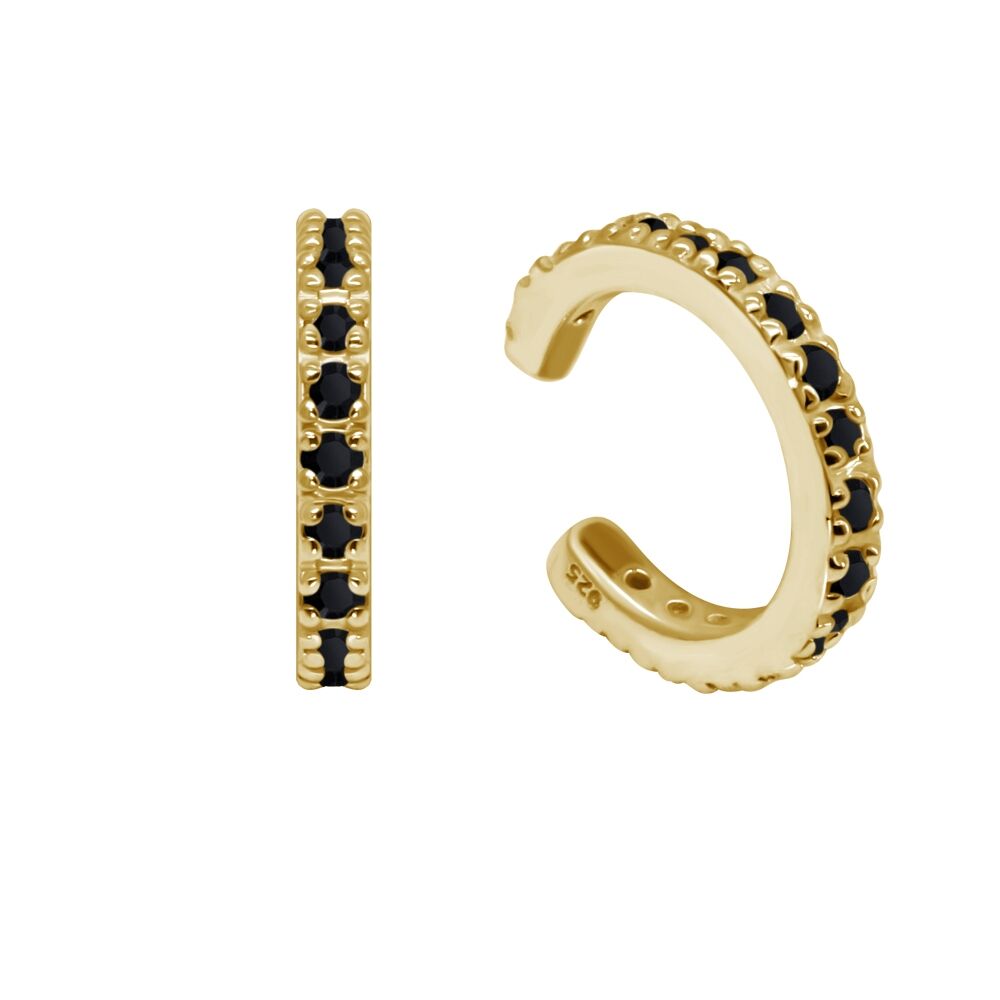 עגיל ללא חור קליפ מכסף וציפוי זהב קריסטלים שחורים משובצים