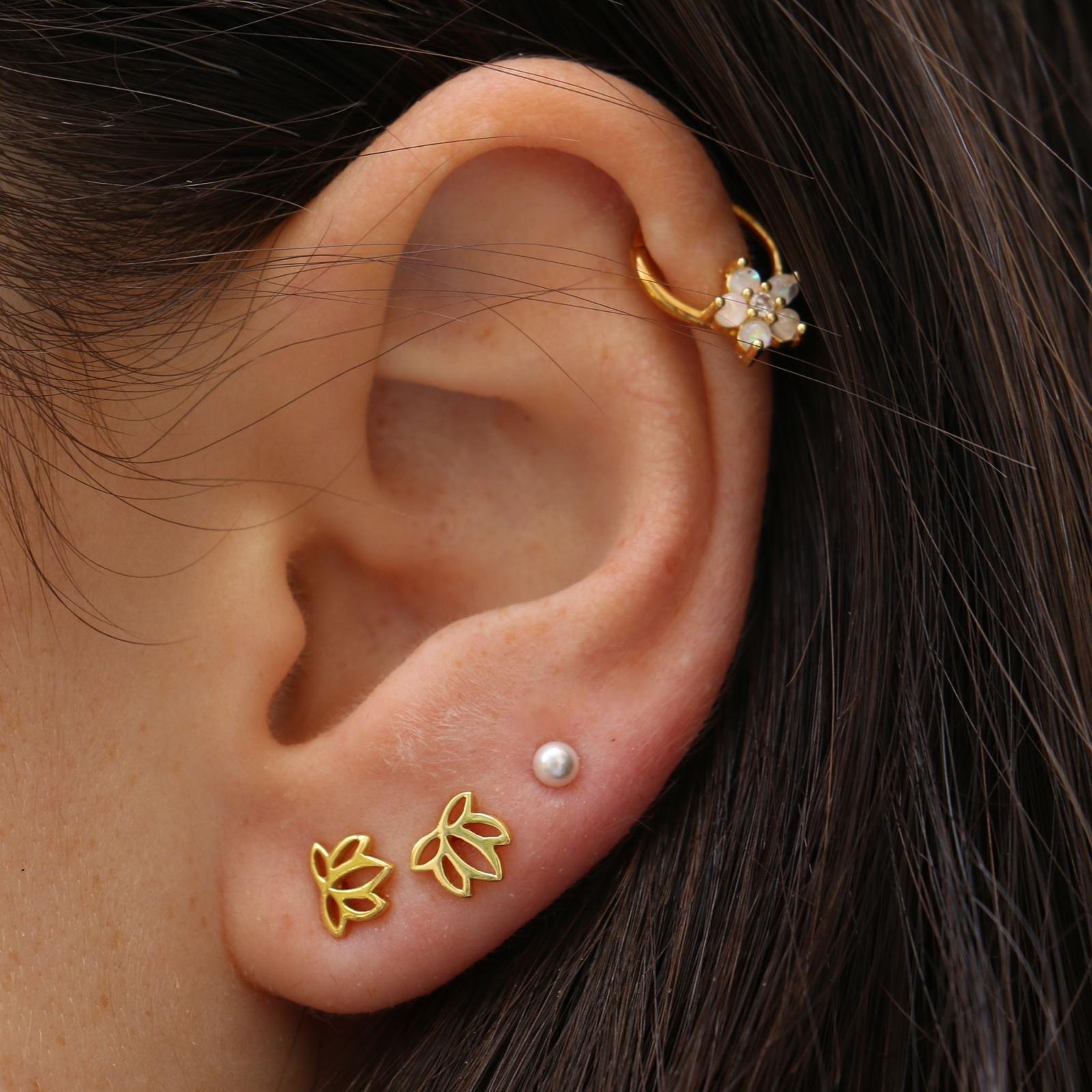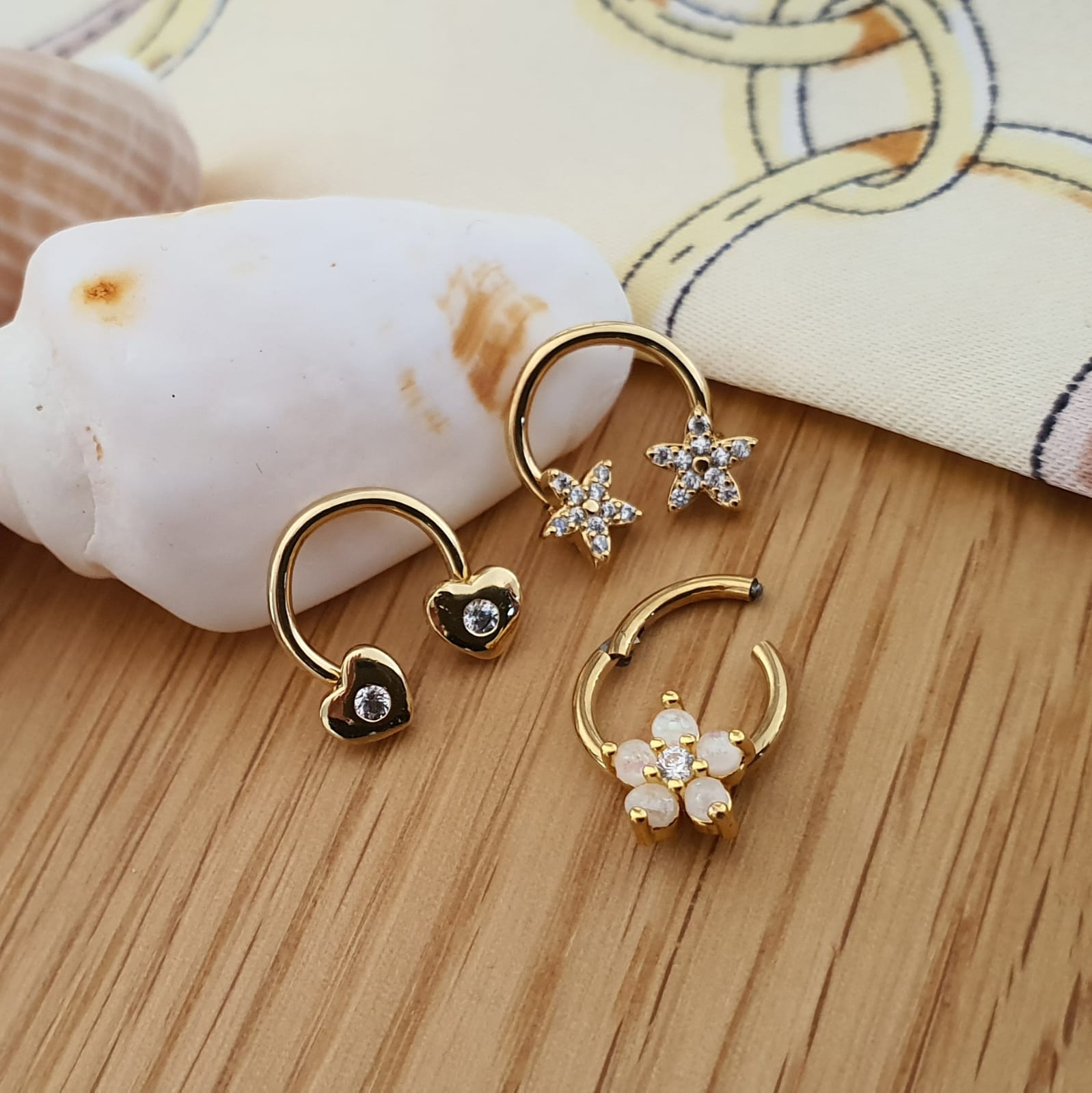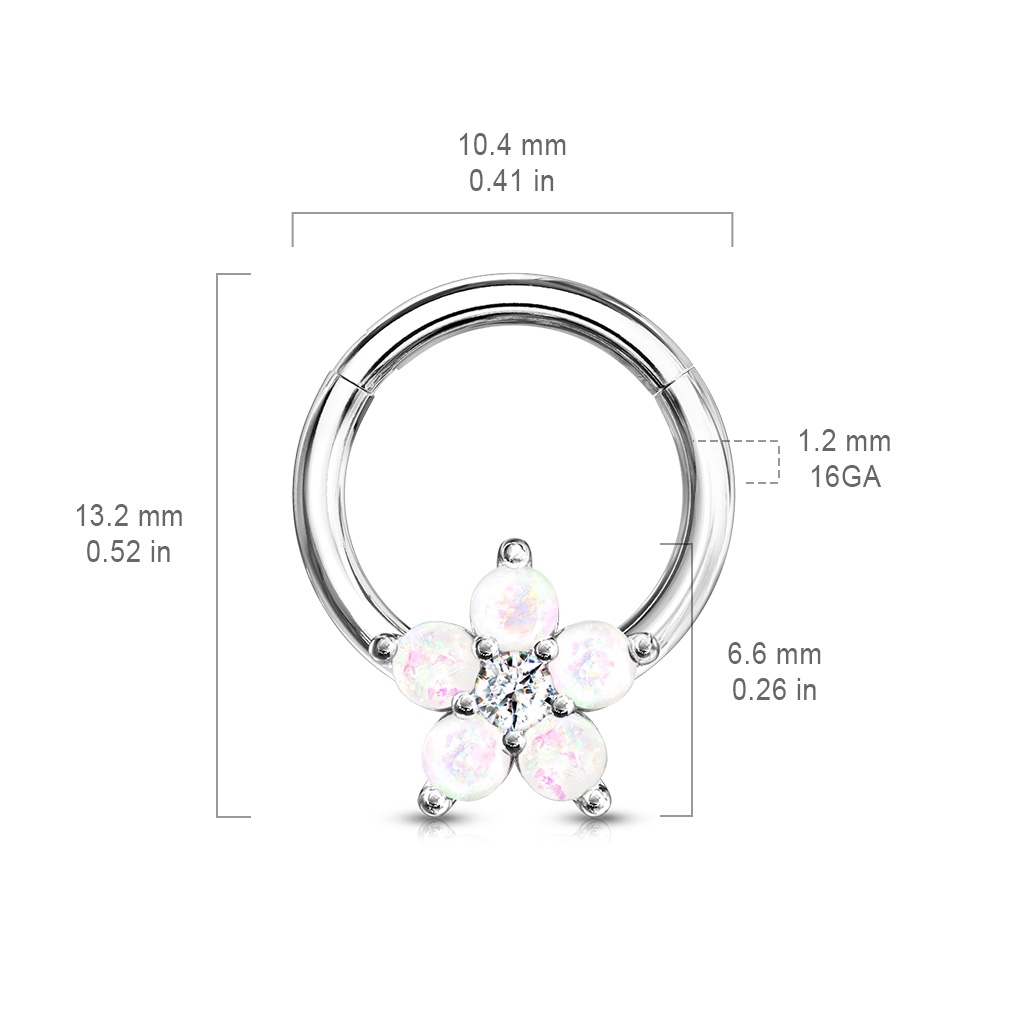 עגיל פירסינג הליקס מציפוי זהב – קליקר פרח אופלים לבנים