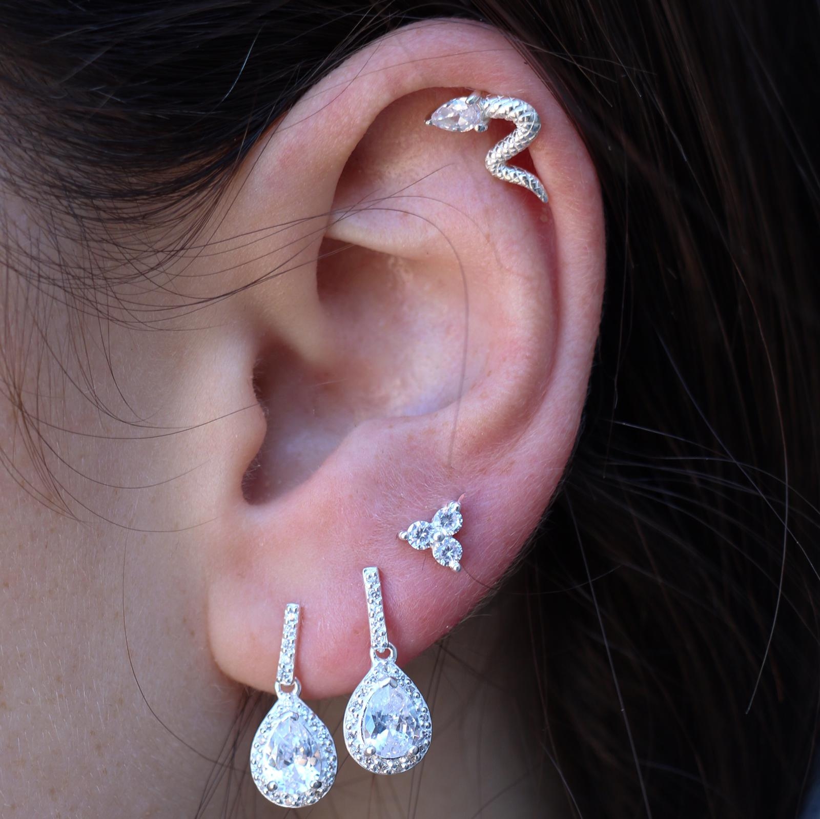עגיל פירסינג הליקס מציפוי זהב – נחש וקריסטל לבן