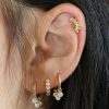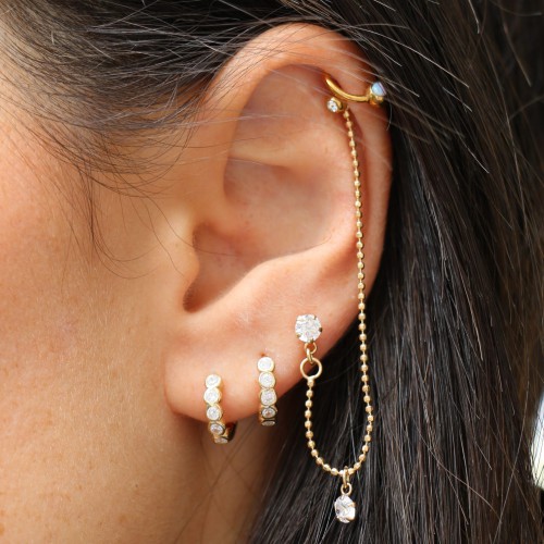זוג עגילי חישוק האגיס (עגיל בודד) 8 מ"מ מכסף וציפוי זהב עם קריסטלים לבנים עגולים