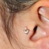 עגיל פירסינג טראגוס / הליקס / קונץ' / פלאט מציפוי זהב – עלה וזירקונים לבנים