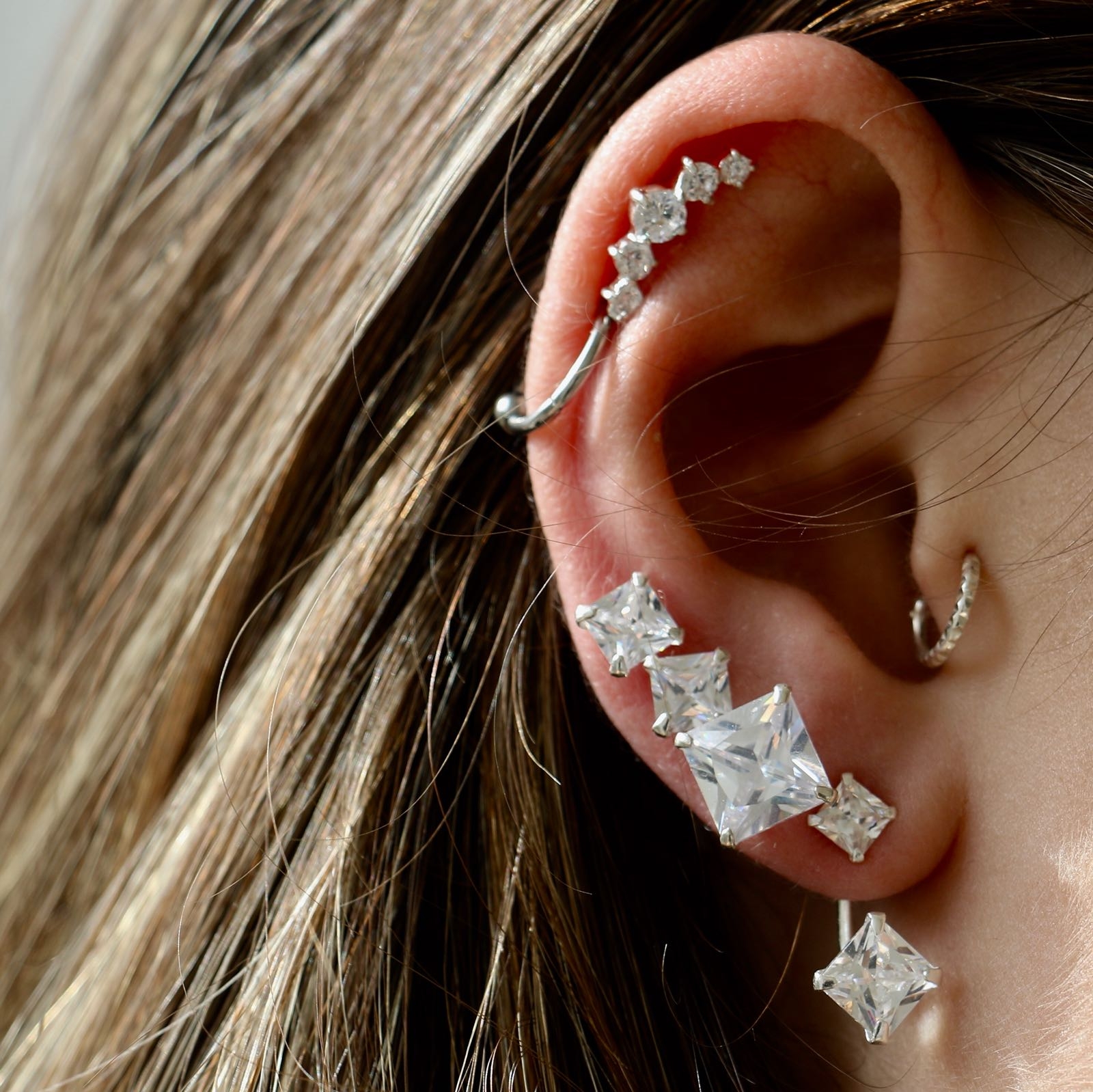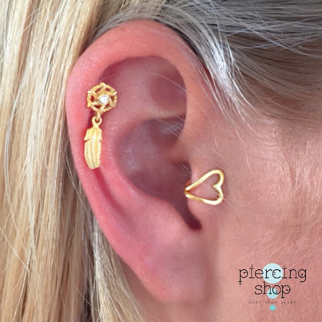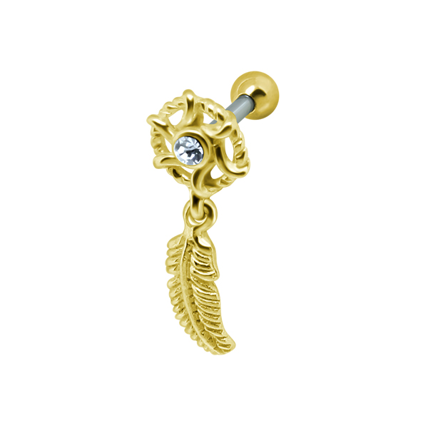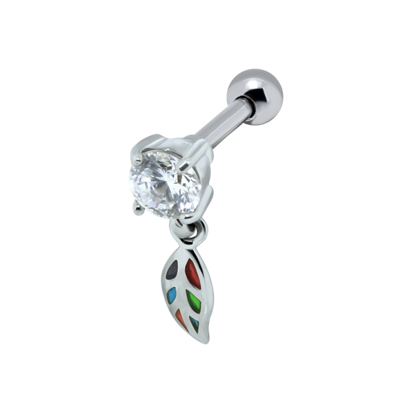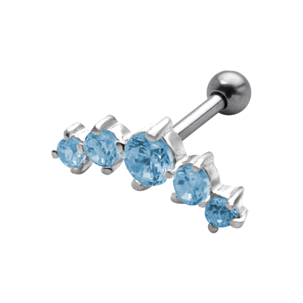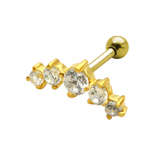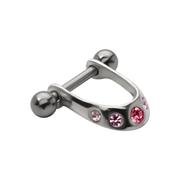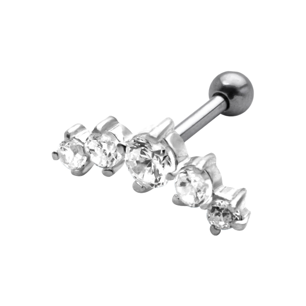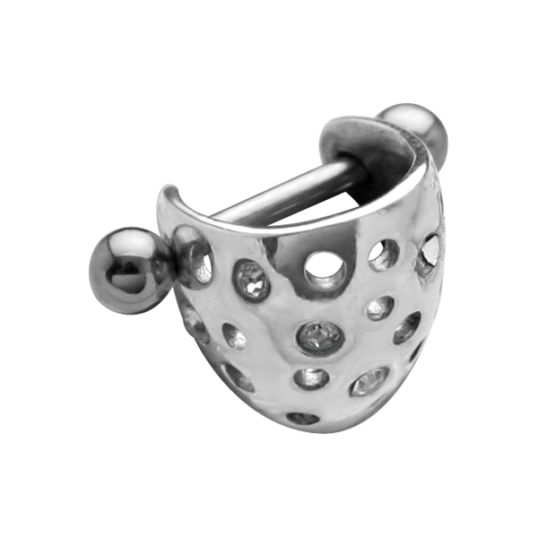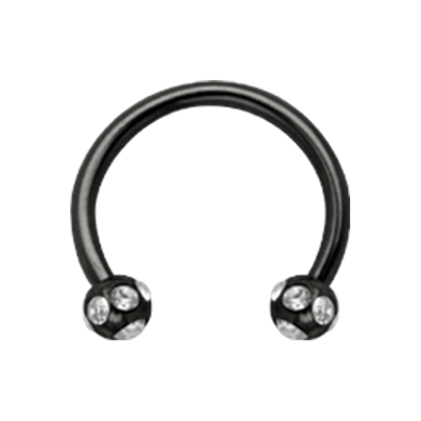 עגיל פירסינג טראגוס / הליקס פרסה שחורה וקריסטלים לבנים