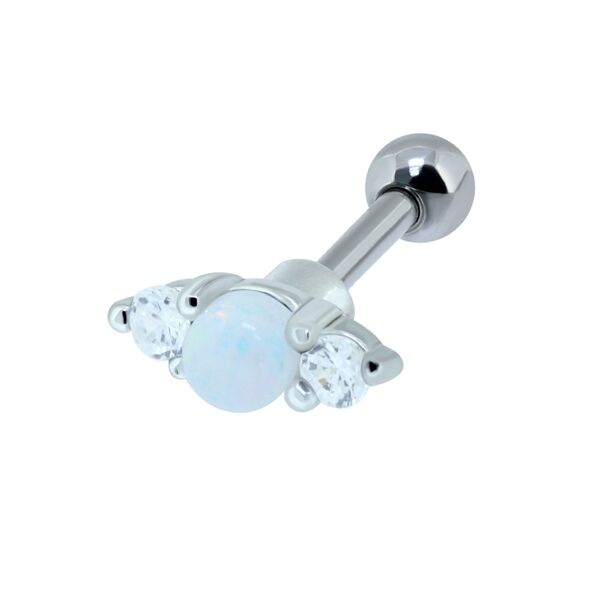 עגיל פירסינג הליקס – אופל לבן וקריסטלים לבנים