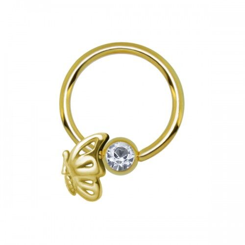 עגיל טבעת לחץ הליקס / טראגוס -ציפוי זהב פרפר וקריסטל לבן