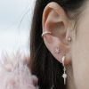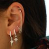 זוג עגילי חישוק האגיס (עגיל בודד) 8 מ"מ מכסף עם קריסטלים לבנים וכוכב