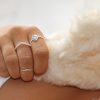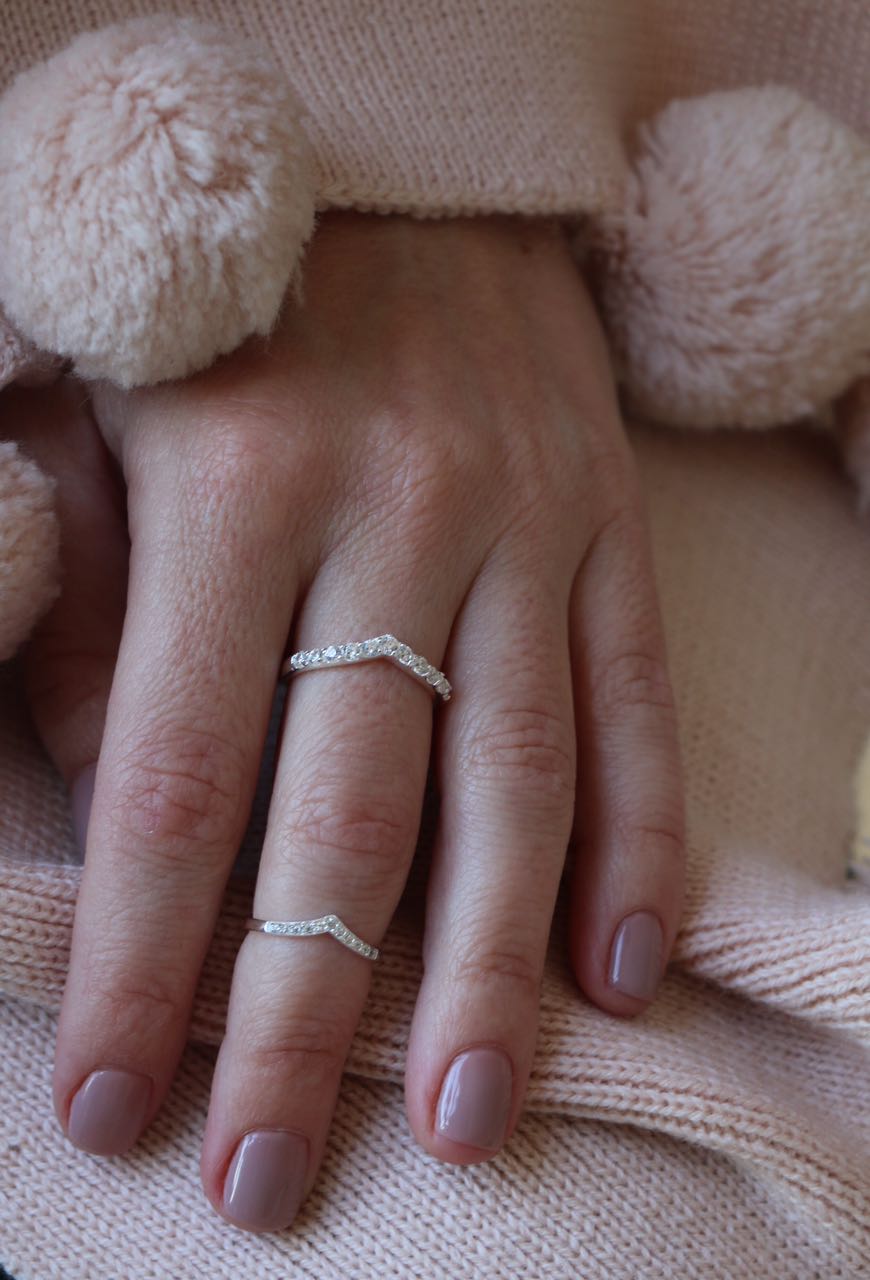 טבעת חצי מכסף חצי לב וקריסטלים לבנים
