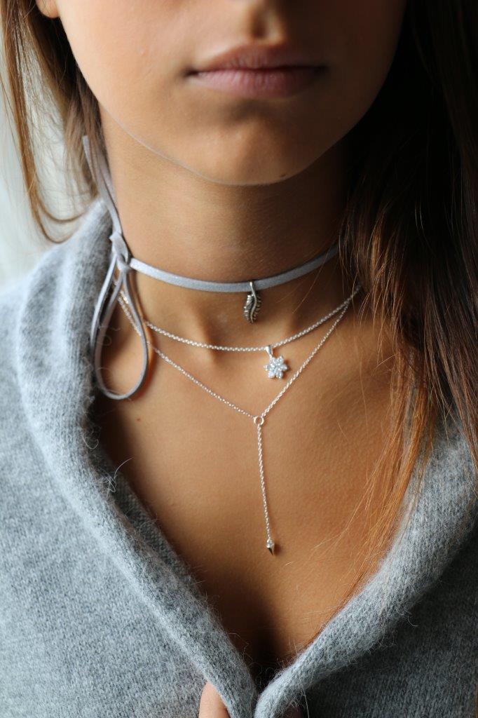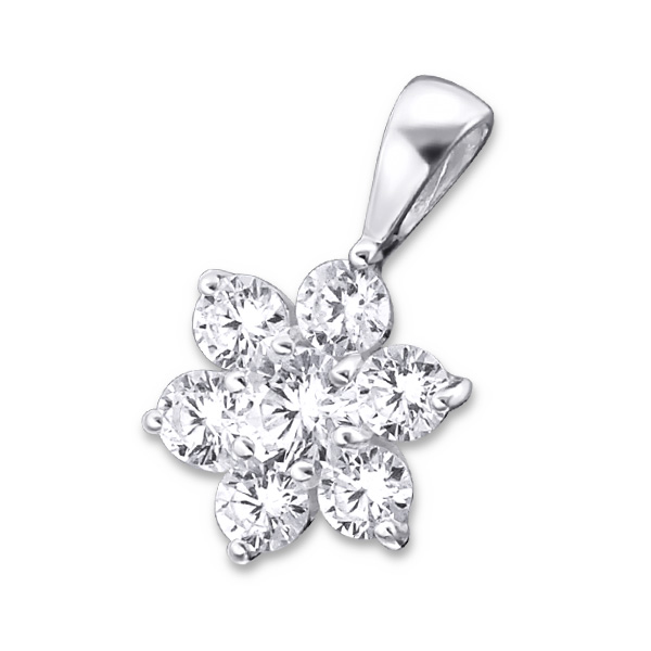 שרשרת מכסף – פרח וקריסטלים לבנים