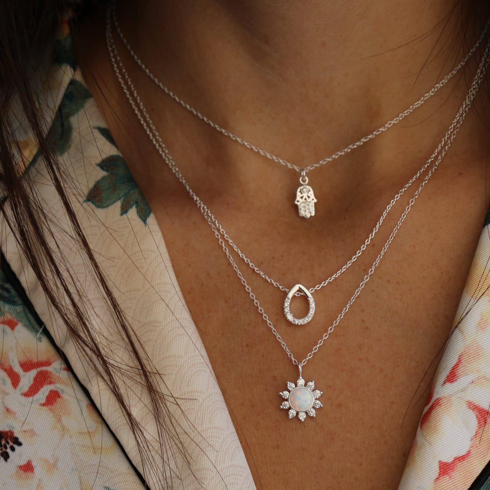 שרשרת מכסף – פרח קריסטלים לבנים ואופל לבן