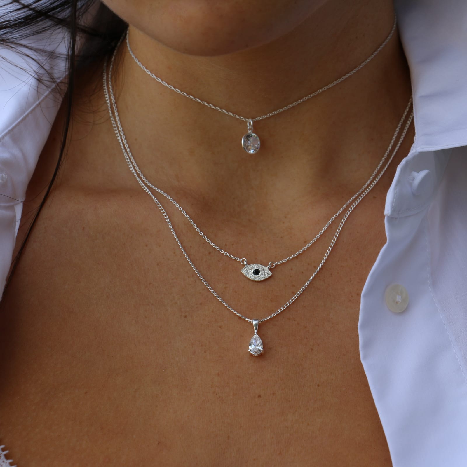 שרשרת מכסף צ'וקר – זירקוניה עגולה לבנה
