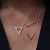 שרשרת מכסף – משולש חלול וקריסטלים לבנים