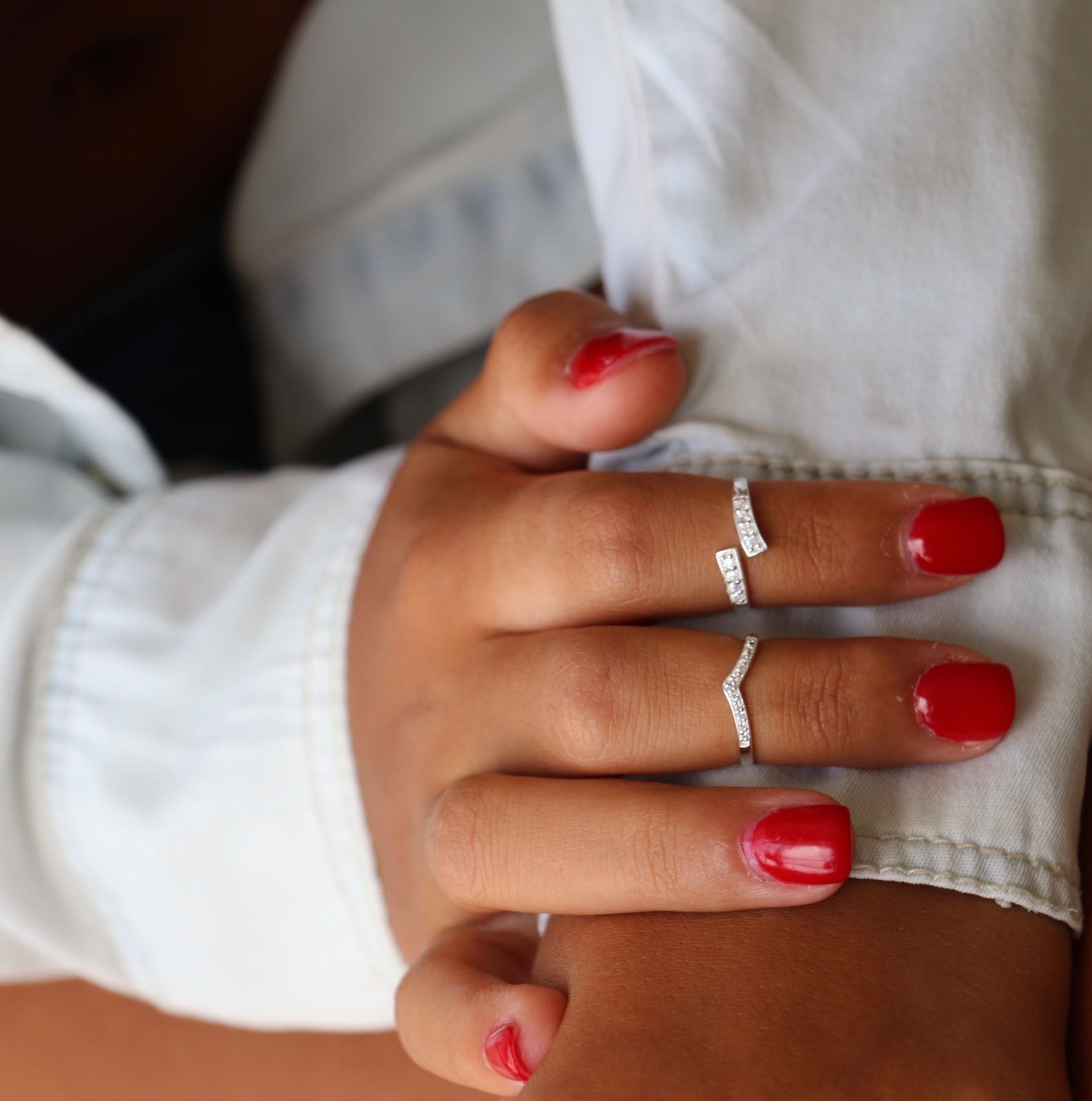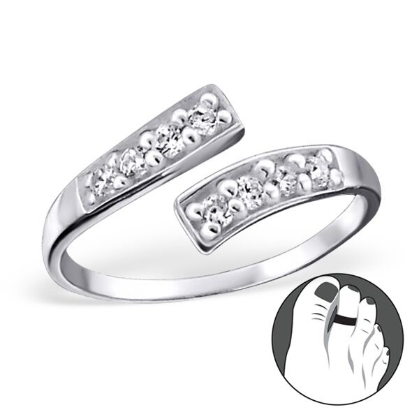 טבעת חצי / רגל מכסף – פס וקריסטלים לבנים