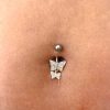 עגיל פירסינג בטבור – שני פרפרים וקריסטלים לבנים