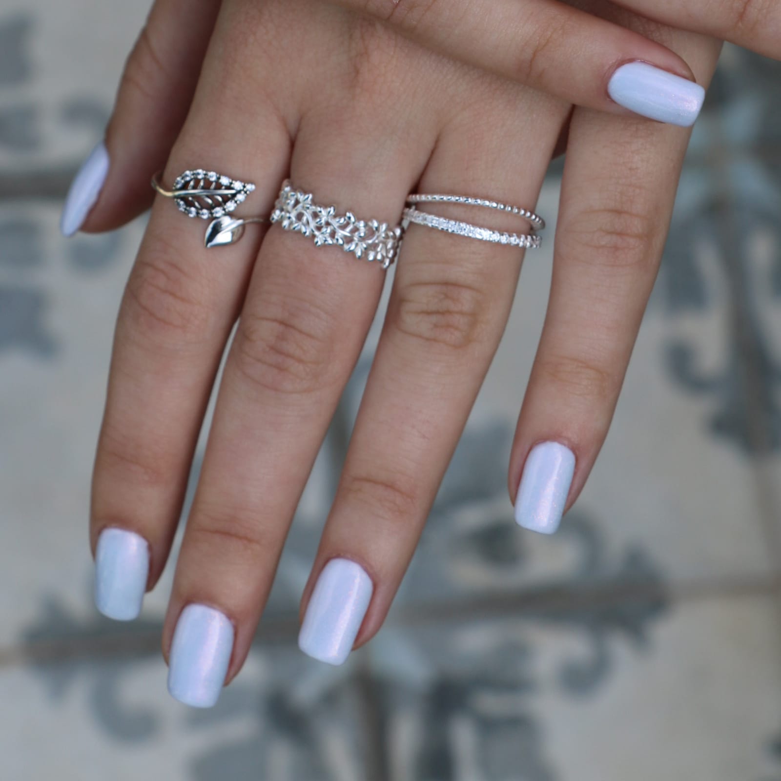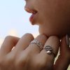 טבעת אינדונזית מכסף – שני עלים וקריסטלים לבנים