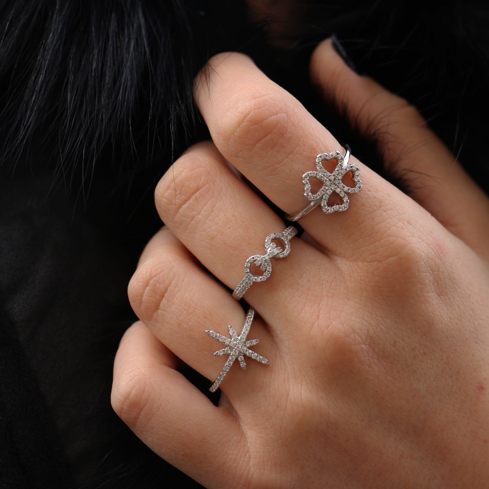 טבעת מכסף וציפוי רודיום שלושה עיגולים שלובים וקריסטלים לבנים