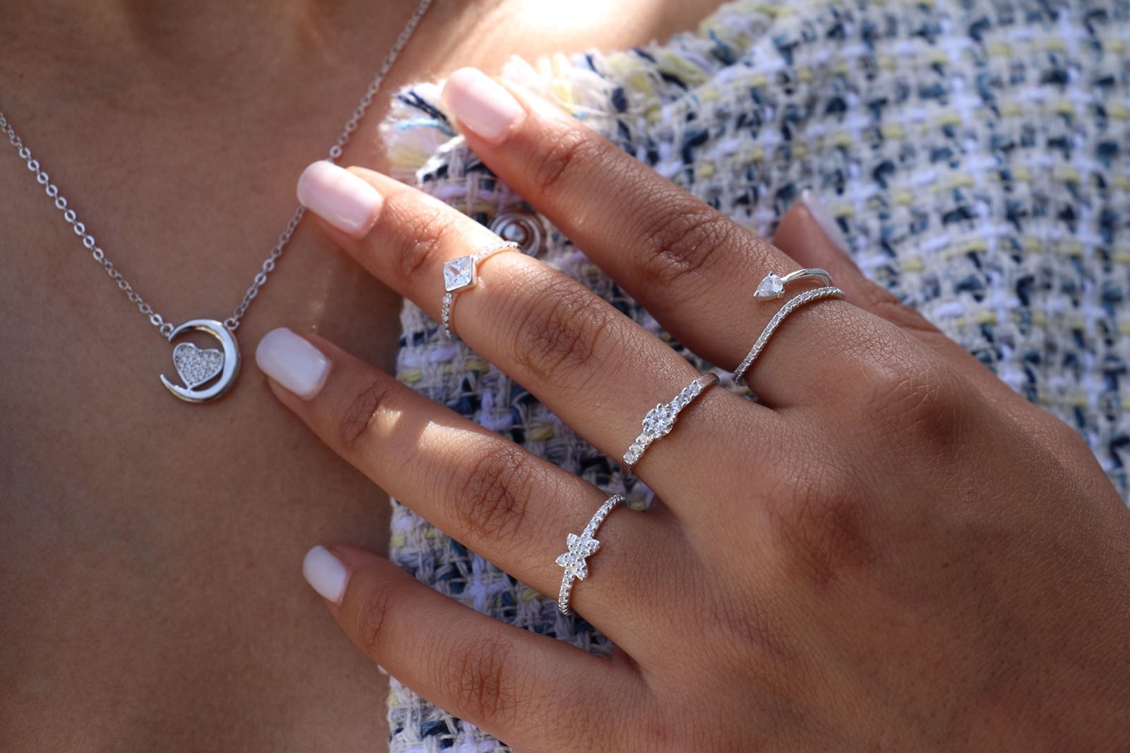 טבעת מכסף זירקוניה טיפה וקריסטלים לבנים