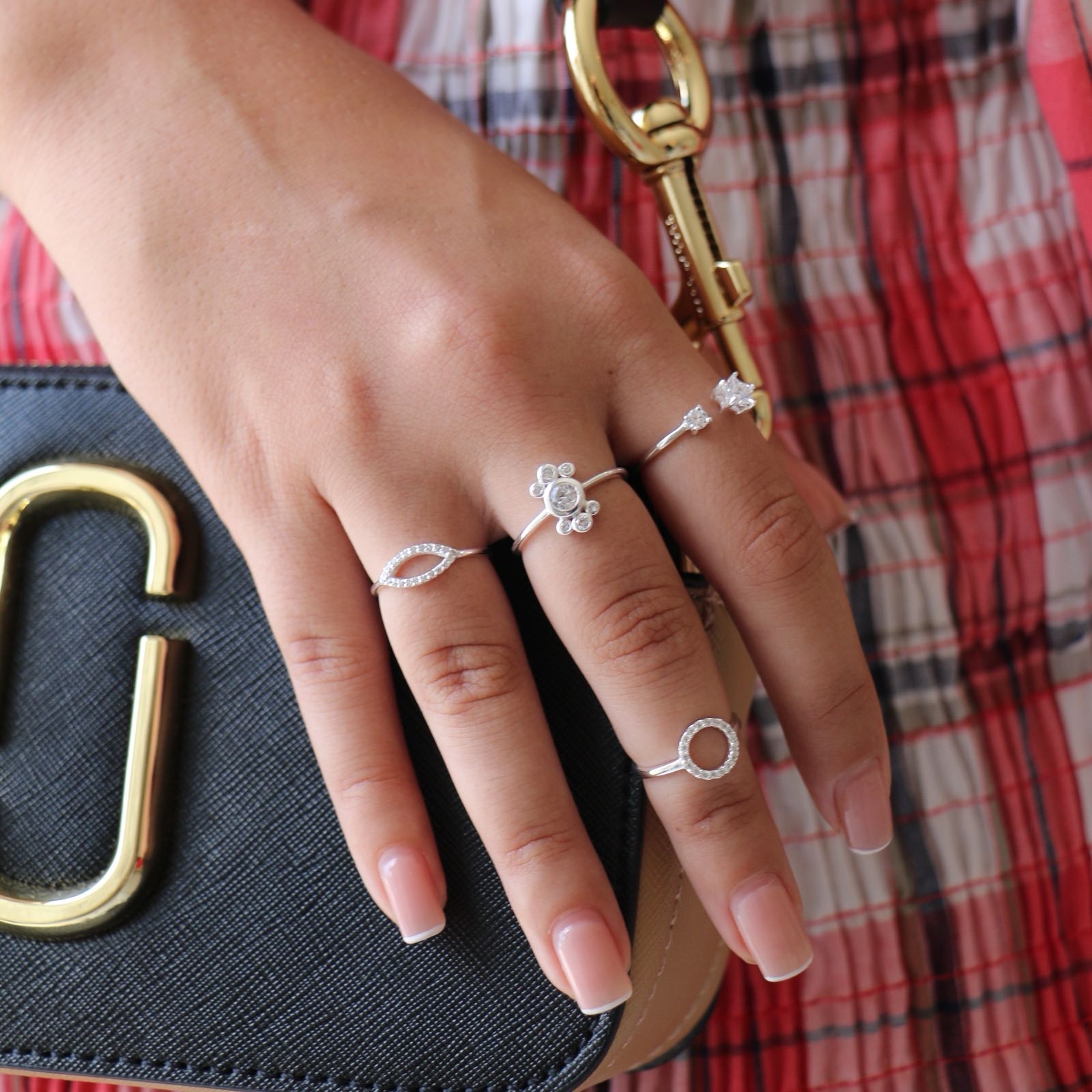 טבעת מכסף צורת עין וקריסטלים לבנים
