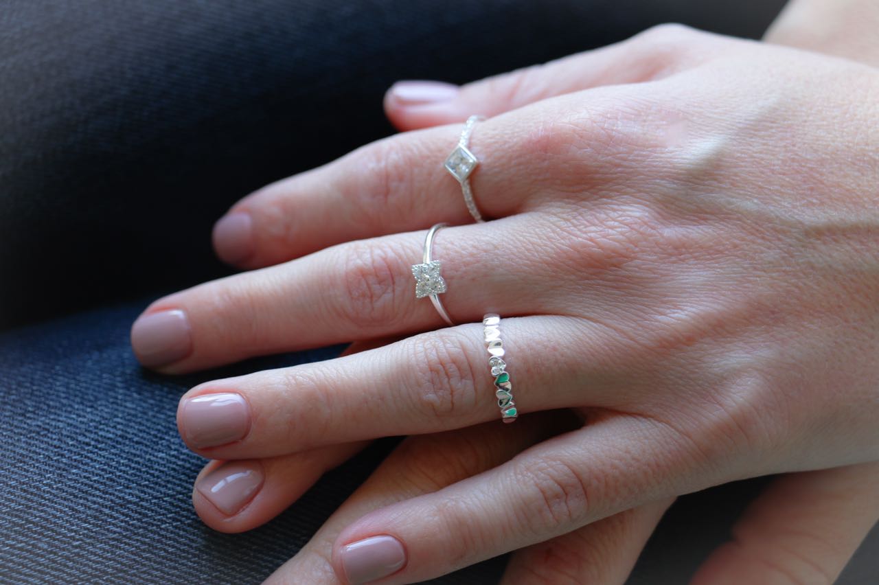 טבעת מכסף פרח ו4 קריסטלים משובצים לבנים