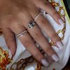 טבעת מכסף – גאומטרית עם קריסטלים גווני אדמה