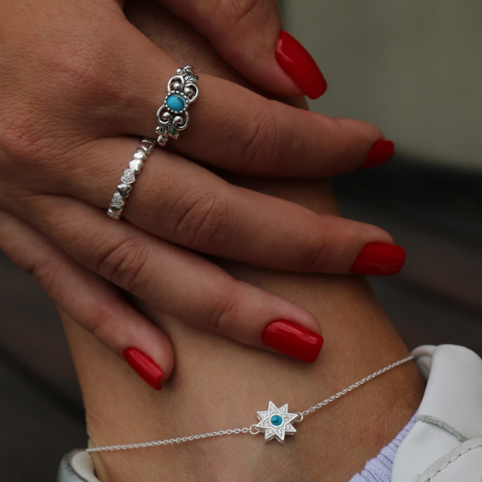 טבעת מכסף – לבבות וקריסטלים לבנים משובצים