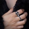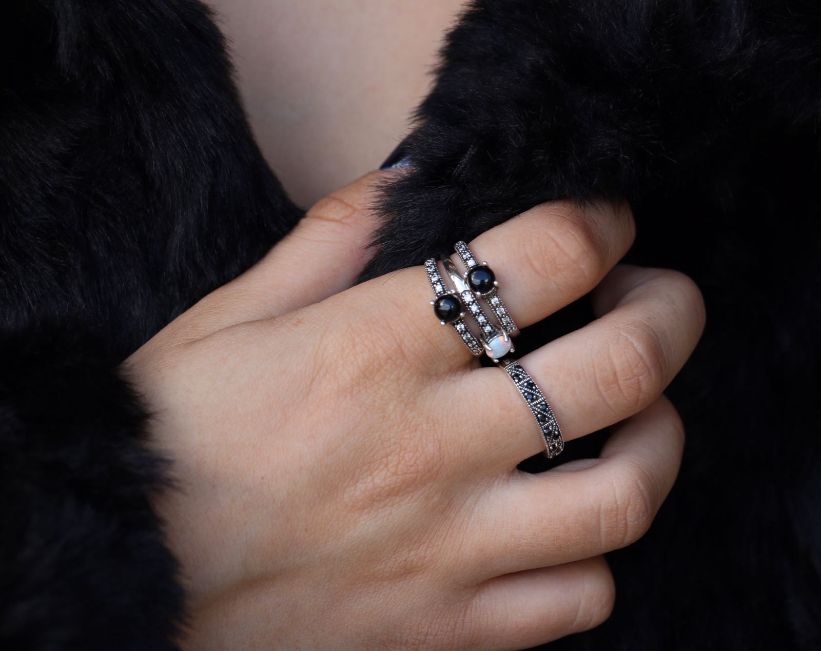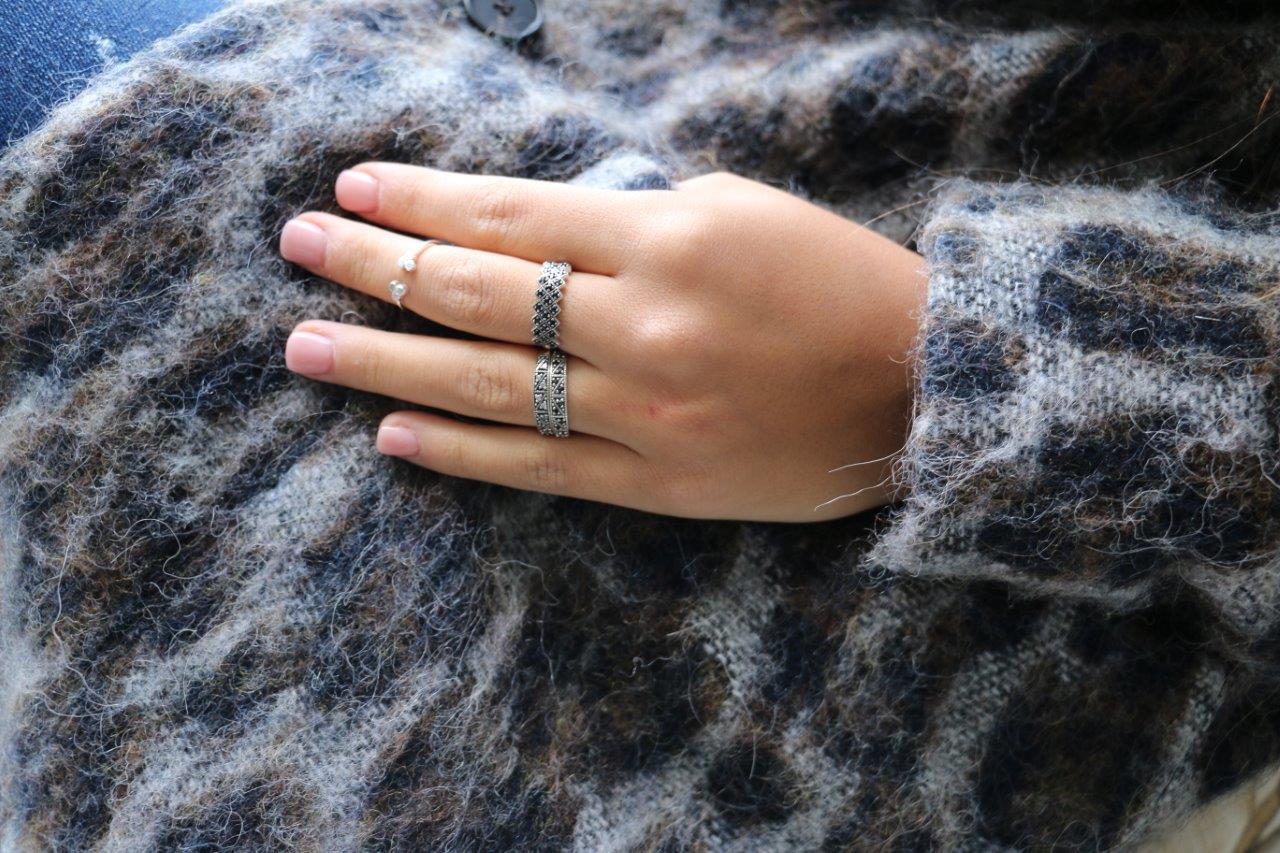 טבעת כסף סגנון אינדונזי משולשים קריסטלים לשחורים