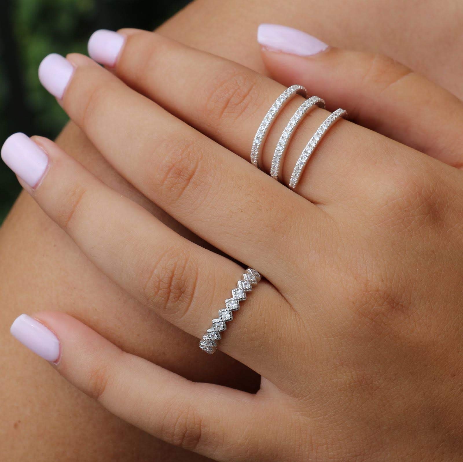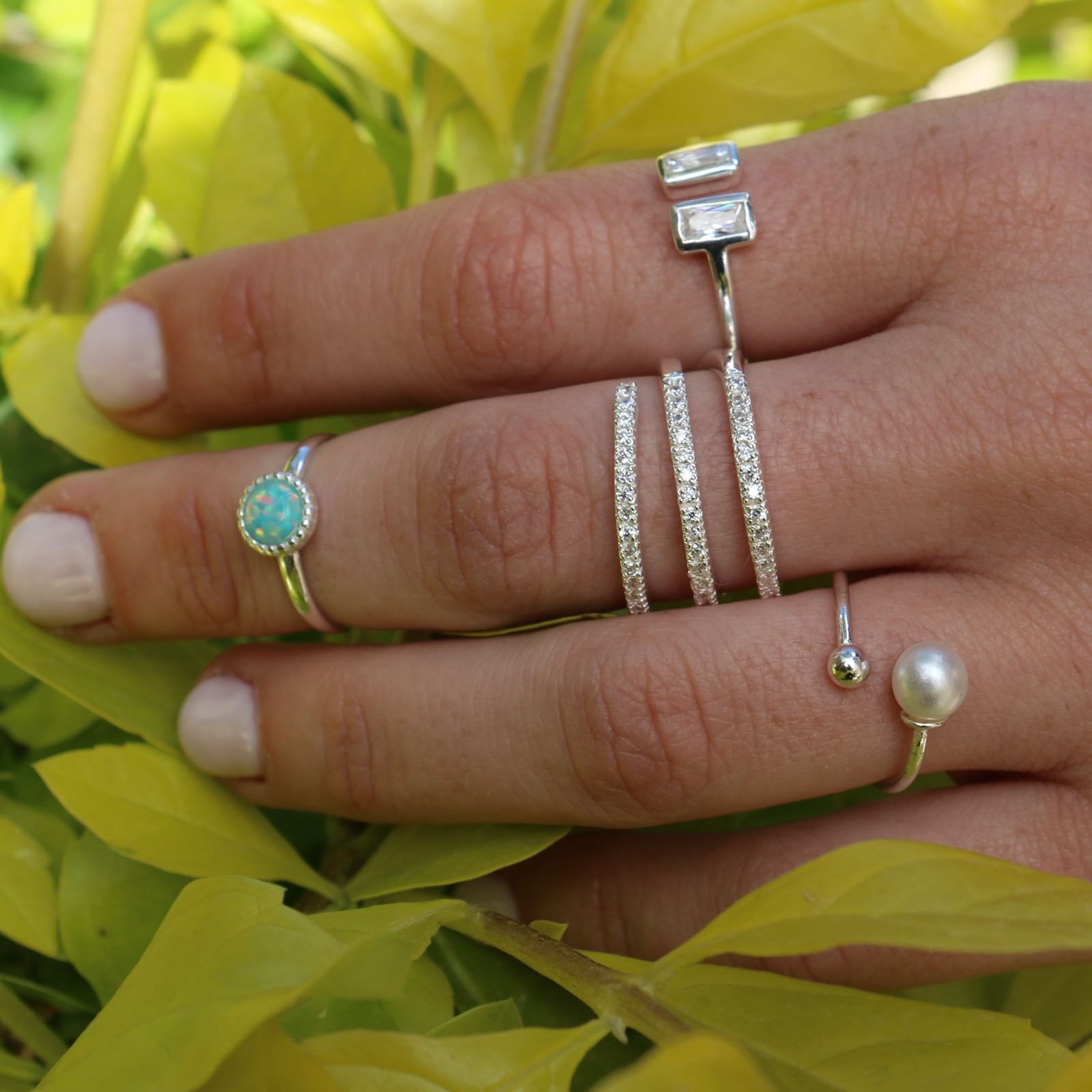 טבעת כסף -מסובבת וקריסטלים לבנים