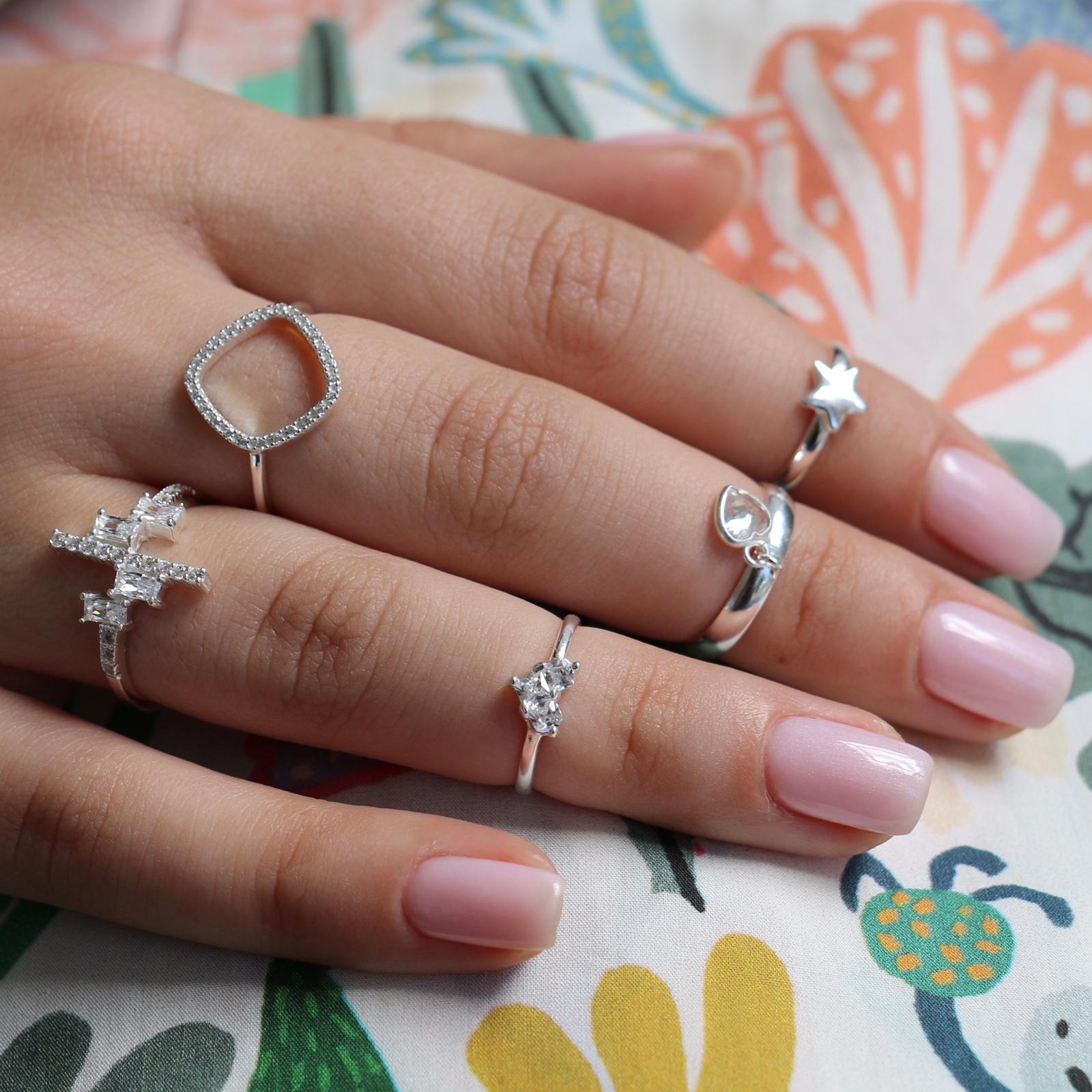 טבעת מכסף – מעויין של קריסטלים לבנים