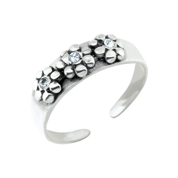 טבעת רגל מכסף – עיטור פרחים קריסטלים לבנים